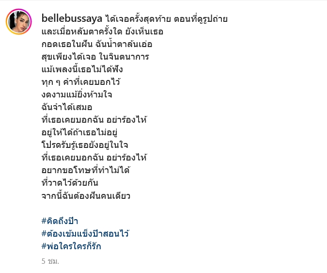 เบล บุษญา โพสต์ภาพคู่พ่อ บรรยิน ตั้งภากรณ์ หลังถูกศาลพิพากษายืนประหารชีวิต คดีอุ้มฆ่าเสี่ยชูวงษ์ เผยคิดถึงป๊า ต้องเข้มแข็งป๊าสอนไว้ พ่อใครใครก็รัก
