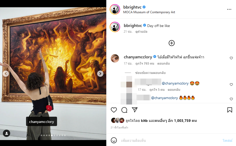 ล่าสุด (31 สิงหาคม 2565) ก็เล่นเอาแฟน ๆ ลุ้นกันอีกแล้ว หลัง หนุ่มไบร์ท ออกมาโพสต์ภาพขณะไปชมนิทรรศการศิลปะกับ สาวนิ้ง และยังมี 2 นักแสดง เต ตะวัน กับ นีร สุวรรณมาศ ร่วมแก๊งไปด้วย แต่ก็ทำเอาคนอดโฟกัสโมเมนต์ระหว่างหนุ่มไบร์ทและสาวนิ้งไม่ได้