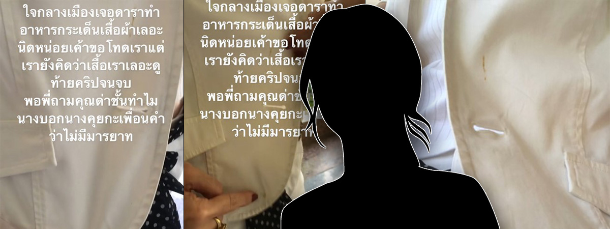 เป็นประเด็นร้อน ๆ ที่กำลังถูกพูดถึงอย่างมากในโลกออนไลน์ตอนนี้ สำหรับกรณีผู้ใช้ TikTok รายหนึ่งโพสต์คลิปเล่าเหตุการณ์ไปรับประทานอาหารที่โรงแรมแห่งหนึ่งระดับมิชลินสตาร์ ตอนตักอาหารเขาก็คุยเล่นคิกคัก แล้วอาหารก็กระเด็นหล่นโดนเสื้อสูทของเธอ ลากถึงกางเกง ซึ่งใส่ชุดสีขาวอยู่ ยังไม่ทันได้อาหารก็เจอแบบนี้เลย
