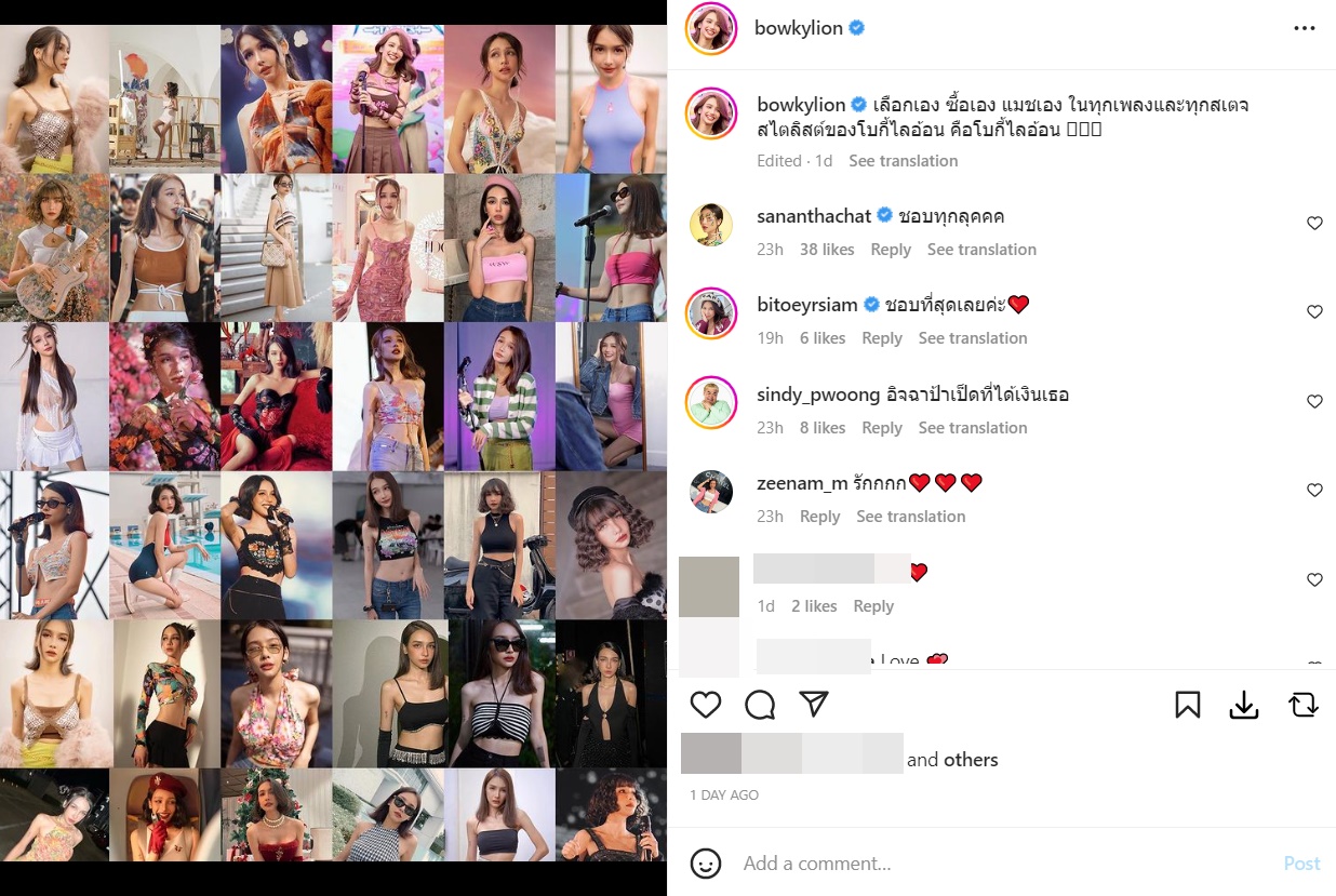 ล่าสุด (19 กันยายน 2565) โบกี้ไลอ้อน ก็ออกมาเผยภาพรวมลุคสุดปังของเธอที่แฟน ๆ ชื่นชอบลง IG พร้อมข้อความว่า "เลือกเอง ซื้อเอง แมตช์เอง ในทุกเพลงและทุกสเตจ สไตลิสต์ของโบกี้ไลอ้อน คือโบกี้ไลอ้อน" เป็นการเผยเบื้องหลังความปังว่าเลือกเองทั้งหมดนั่นเอง