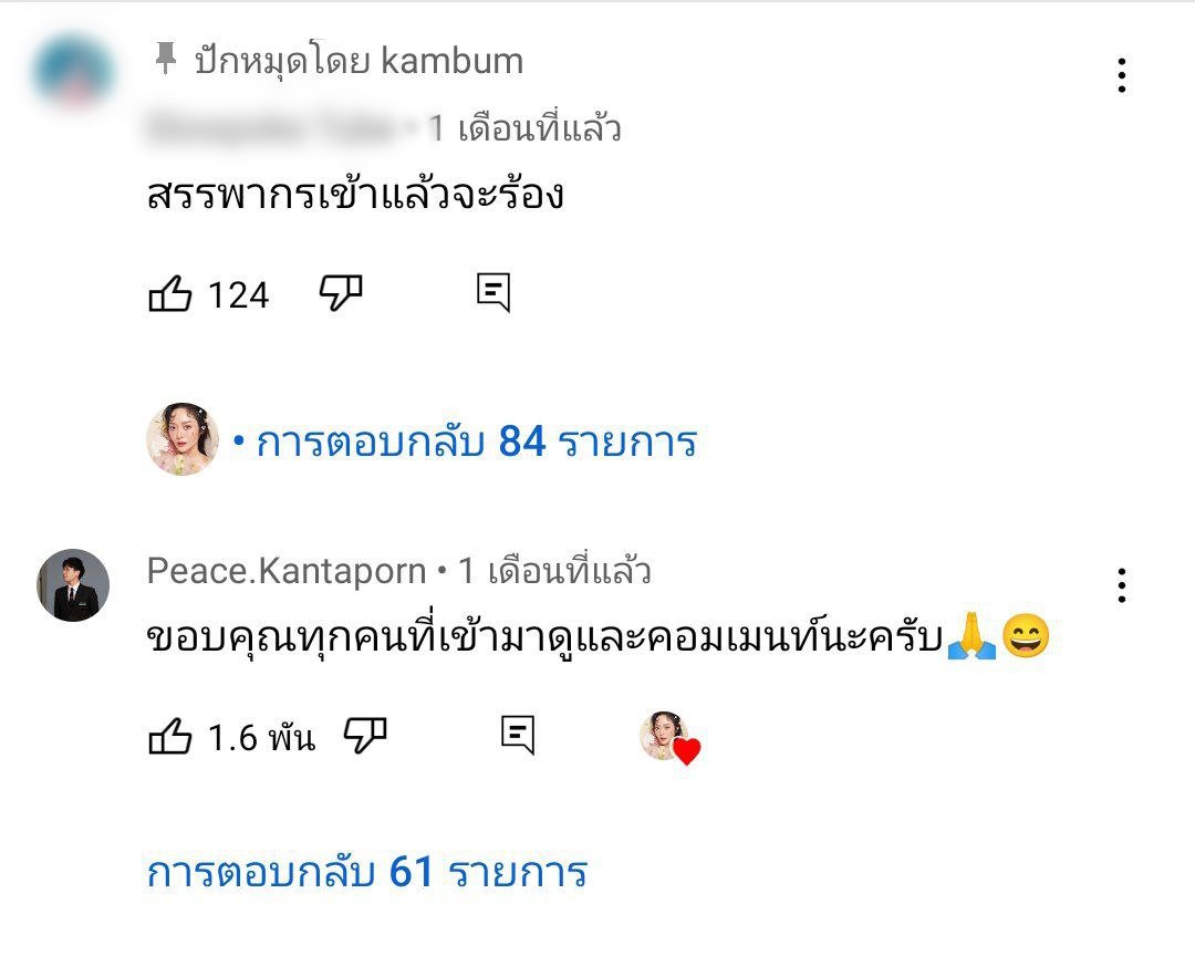 ขณะที่หนุ่มพีท ก็ได้มาตอบกลับคอมเมนต์ดังกล่าวด้วยเช่นกัน บอกว่า "ขอบคุณที่เป็นห่วงครับ" และยังคอมเมนต์ใต้คลิปอีกว่า "ขอบคุณทุกคนที่เข้ามาดูและคอมเมนต์นะครับ"