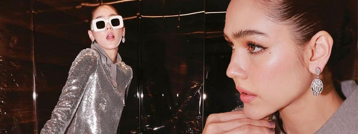 ประกอบไปด้วย กำไลข้อมือ ต่างหู Serpenti ตัวเรือนไวท์โกลด์ฝังเพชรประดับมรกต เข้ากับชุดมินิเดรสโปโล ปักเลื่อมทั้งตัวโทนสี Silver จาก JW ANDERSON ของดีไซเนอร์หนุ่มมาแรงชาวไอริชเหนือ โจนาธาน แอนเดอร์สัน (Jonathan Anderson) แมตช์กับบูตยาวปักคริสตัล จาก Saint Laurent กระเป๋าทรงบักเก็ตจาก Louis Vuitton แว่นกันแดดสีขาวจาก Loewe