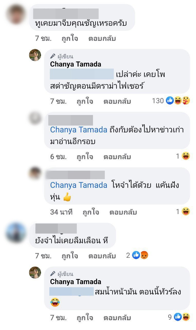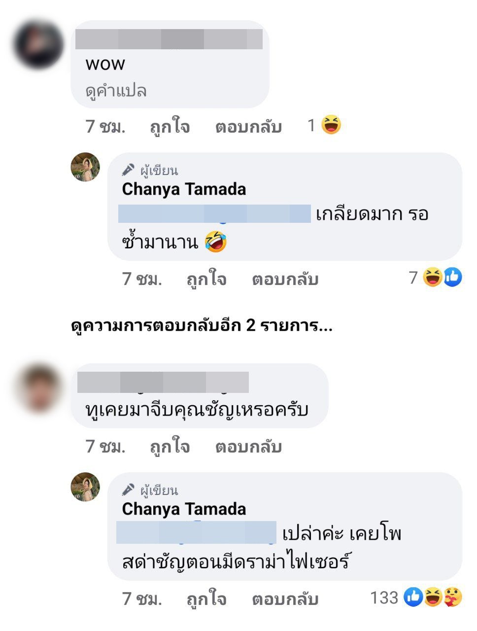 นอกจากนี้ ยังมีคนเข้ามาถามว่า "ทูเคยมาจีบคุณชัญเหรอครับ" ด้านสาวชัญญ่าก็เผยว่า "เปล่าค่ะ เคยโพสต์ด่าชัญตอนมีดราม่าไฟเซอร์"