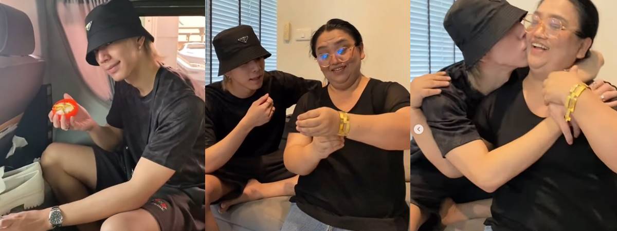 จากนั้นไบร์ทก็ตีเนียนถือถุงรองเท้าเข้ามาในบ้าน แล้วบอกว่าซื้อมาให้ คุณแม่ก็ไม่รอช้ารีบหยิบมาลองใส่ดู จังหวะที่หยิบกระดาษซึ่งอัดอยู่ในรองเท้าออก คุณแม่ก็เจอเข้ากับถุงสีแดง ก่อนจะยิ้มไม่หุบเมื่อเปิดออกมาแล้วเจอกำไลทอง และยิ่งตกใจกว่านั้น เมื่อรู้ว่าเป็นทองน้ำหนัก 5 บาท
