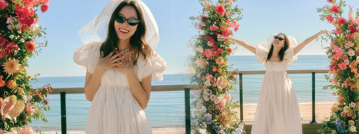 โดย กงฮโยจิน มาในชุดเจ้าสาวสุดเรียบง่าย ดูมินิมอลสุด ๆ แถมเจ้าตัวยังเพิ่มความชิค ด้วยแว่นตากันแดดและเวลเจ้าสาว ทำให้ลุคเจ้าสาวของนางเอกดังดูสวยละมุน บ่งบอกความเป็นตัวของตัวเองของเจ้าตัวมาก ๆ
