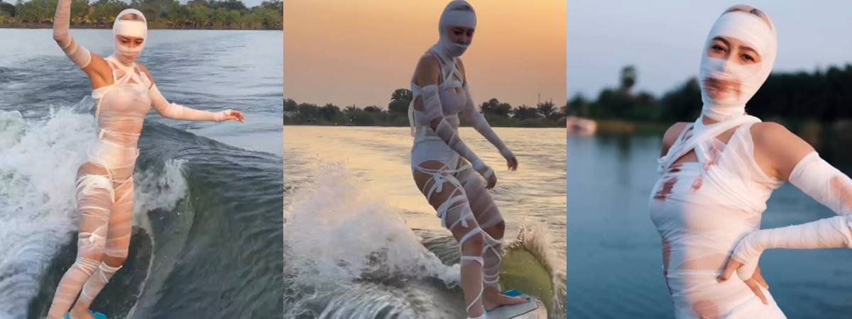 แต่จะให้แต่งตัวเป็นผีมัมมี่สาวสุดแซ่บก็ดูจะธรรมดาเกินไป เพราะสาวแซมมี่มาเหนือด้วยการแต่งตัวเป็นมัมมาโชว์สกิลเล่นเวกเซิร์ฟขั้นเทพ โต้คลื่นชิล ๆ วาดลวดลายแบบมืออาชีพ สวยพลิ้วไหวสุด ๆ พร้อมบอกว่า "อะ วิมาละ Anck-su-namun เวอร์ชั่นโซ้กกกกก มีตั้งแต่เบื้องหน้า เบื้องกลาง และเบื้องหลัง #thisishalloween"