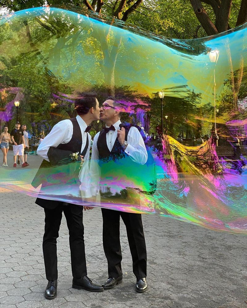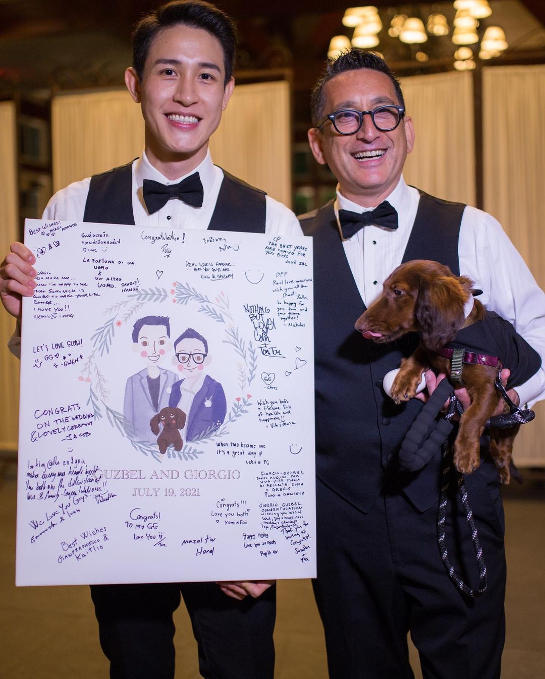 กัสเบล : ครับผม คือครั้งแรกผมเขินมาก เราไปโรงแรมอยู่กลางภูเขาที่นิวยอร์ก ก็เหมือนภาคเหนือของเรา แล้วมีร้านอาหาร คือเรารู้อยู่แล้วว่าเราต้องโดนขอแต่งงาน แต่เราไม่รู้ว่าวันไหน เพราะเราไปลองแหวนมาแล้ว พอไปเสร็จปุ๊บช่วงนั้นโควิดเขาไม่ค่อยให้นั่งกันเยอะ แต่ก็มีคนเต็ม เขาก็คุกเข่าขอแต่งงานตรงนั้น เราก็ตกใจ เพราะเราไม่ได้เตรียมตัวเลย แล้วทุกคนแบบ เซย์เยส ๆ มันยิ่งทำให้ผมตื่นเต้น แต่ก็เซย์เยสไปตั้งแต่รอบแรก แล้วเหมือนรูปมันไม่ค่อยสวย เราอยากได้รูปสวย ๆ เขาขออีกครั้ง ครั้งที่ 2 เกิดขึ้นบนเครื่องบินส่วนตัวของเขา