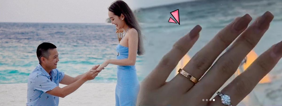 และนอกจากโมเมนต์หวาน ๆ แล้ว หลายคนก็โฟกัสที่แหวนหมั้นสีทองเกลี้ยงของแบรนด์หรูและแหวนเพชรเม็ดโตบนนิ้วของเจ้าตัว เพราะราคาน่าจะอลังการไม่เบาเลยทีเดียว