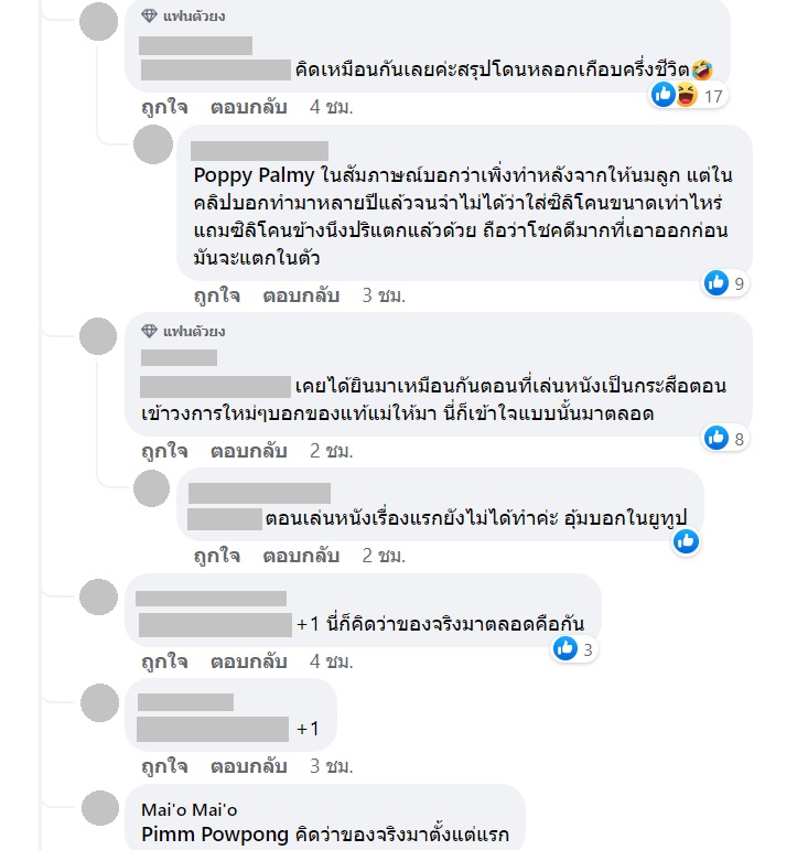 ขณะที่อีกหลายคนรู้สึกงงว่า อุ้ม ไปทำหน้าอกตอนไหน คิดว่าแม่ไม่ได้ทำมาตลอด จนมีคนมาให้ข้อมูลเสริมว่า อุ้ม เคยให้สัมภาษณ์ว่า เมื่อก่อนเป็นของแท้ 100 เปอร์เซ็นต์ แม่ให้มา บวกกับอาศัยว่าเป็นคนดันทรงเก่งมาก เวลาออกงานก็ยัดฟองน้ำ ซิลิโคน จนมาใช้บราปีกนก