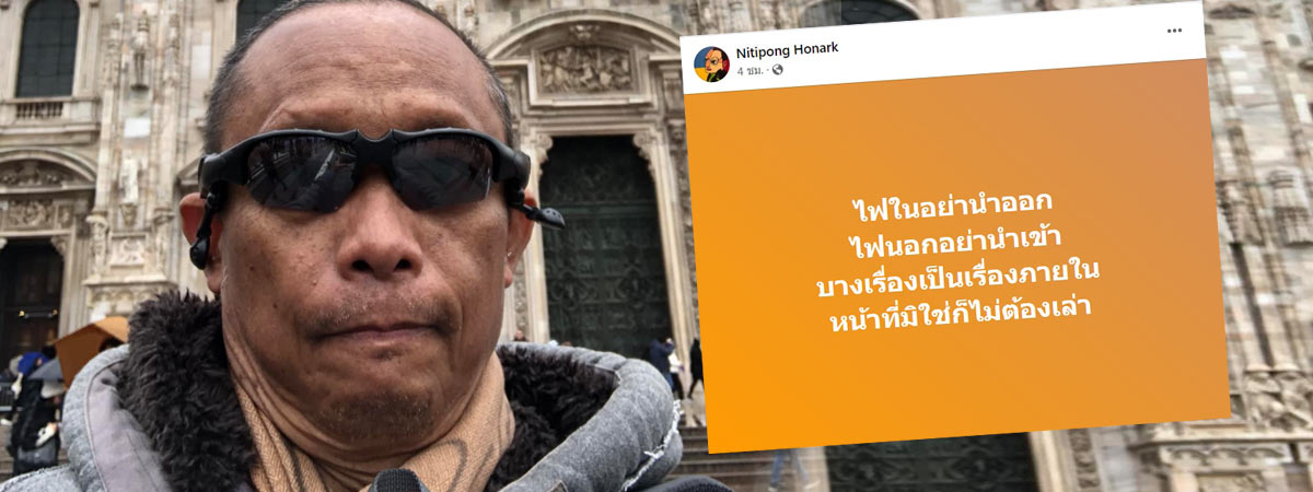 ดี้ นิติพงษ์ ห่อนาค โพสต์สั้น ๆ แต่ถูกใจหลายคน ไฟในอย่านำออก ไฟนอกอย่านำเข้า บางเรื่องเป็นเรื่องภายใน หน้าที่มิใช่ก็ไม่ต้องเล่า