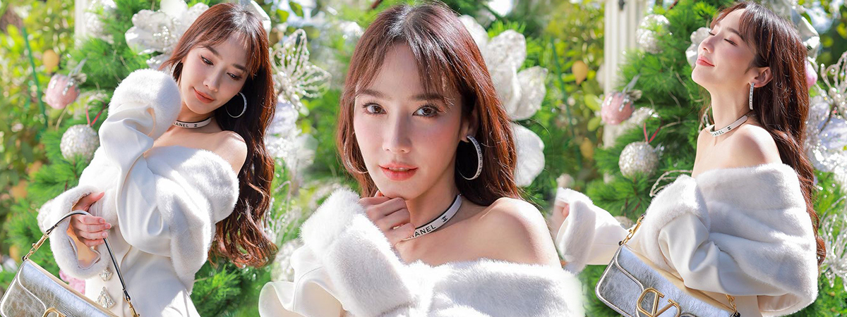 ส่องแฟชั่น อั้ม พัชราภา ซุปตาร์นางเอกของเมืองไทย ในชุดรับลมหนาว แจ็กเก็ตแบบเปิดไหล่จับคู่กับกระโปรง สวยราวกับเจ้าหญิงจริง ๆ