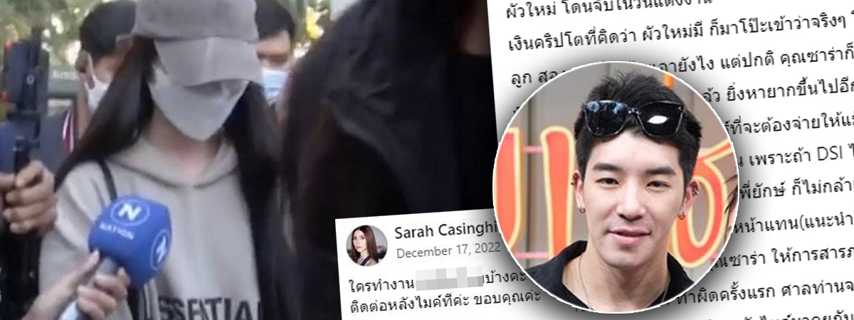 ทั้งนี้ที่เพจเฟซบุ๊ก รวบรวมผู้โดนโกง จาก Forex 3d ได้มีการแฉภาพซาร่าเคยโพสต์เกี่ยวกับเรื่องข้อมูลสายการบิน และยังบอกด้วยว่า แนะนำให้ซาร่าสารภาพทุกข้อกล่าวหา ยอมรับว่าเป็นคนให้ที่พักพิงนายดาริล ซาร่าฉลาด ขึ้นศาลมาก็บ่อย ฟ้องคนก็ตั้งเยอะ แถมยังส่งทนายชื่อดังไปว่าความให้นายดาริล ยัง ด้วย (ทนายชื่อดัง ขนาดที่ DSI ยังต้องเกรงใจ)