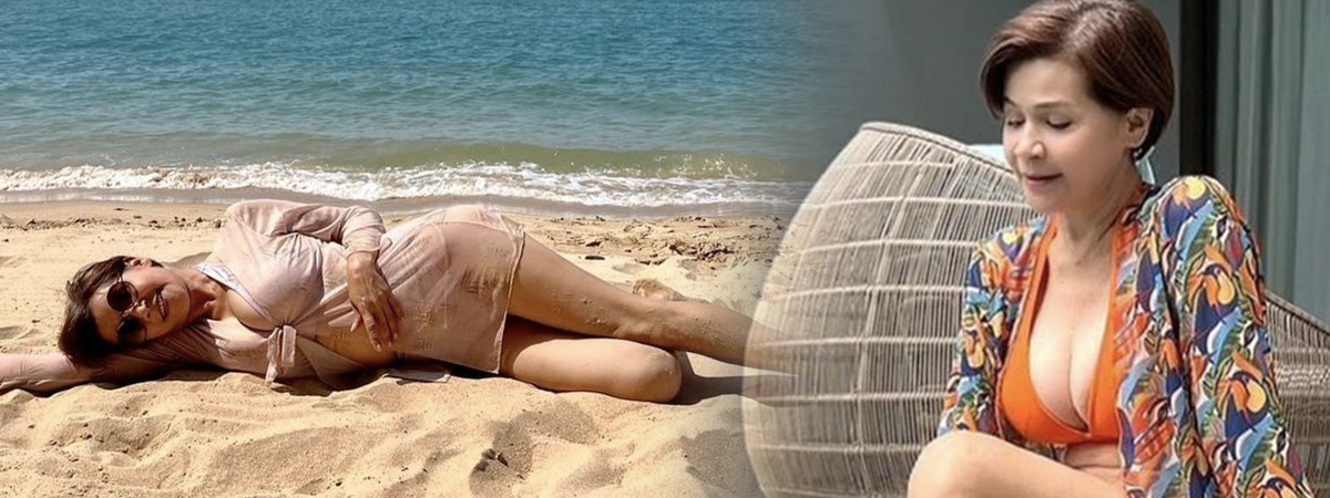 นก จริยา สาดความแซ่บ โพสท่านอนอวดอกอึ๋มกระแทกตา ฮอตสะท้านหาด หุ่นแม่สับเว่อร์ ใครจะเชื่อ 57 แล้ว