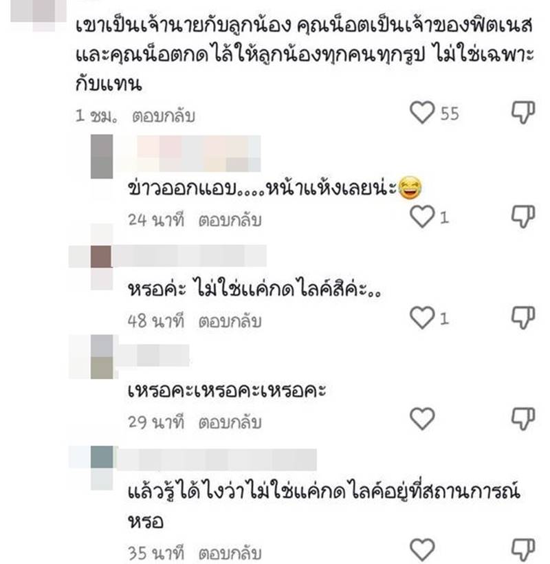 นอกจากนี้ ยังมีคนเปิดความจริงอีกด้านว่า แทน เป็นเทรนเนอร์ในยิมที่น็อตไปออกกำลังกายซึ่งเจ้าตัวเป็นเจ้าของด้วย และกดไลก์ให้กันในฐานะเจ้านายกับลูกน้อง ซึ่งคาดว่าโต๊ะนี้น่าจะรวมเทรนเนอร์ในยิมของหนุ่มน็อตนั่นเอง