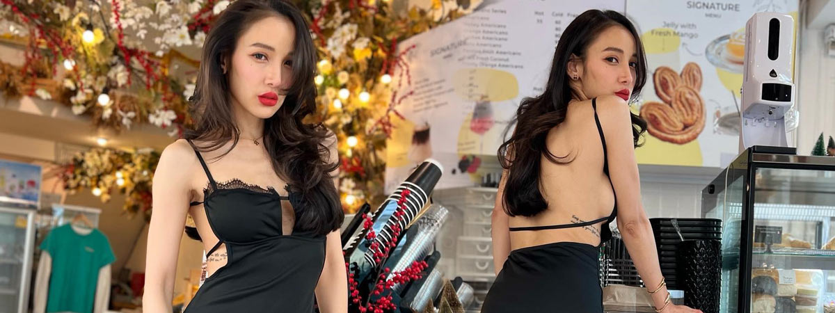 อย่างล่าสุด (1 กุมภาพันธ์ 2566) ที่สาวแพทออกมาเริ่มต้นวันแรกในเดือนแห่งความรักด้วยชุดไปซื้อกาแฟแบบแซ่บไฟลุก กับชุดเดรสตัวสั้นที่ด้านหน้าก็แหวกอกอวดอึ๋มเต็มตา ด้านล่างก็ผ่าสูงแหวกจนเห็นต้นขา ยิ่งด้านหลังเปลือยทั้งแผ่นหลังอวดความขาวรัว ๆ