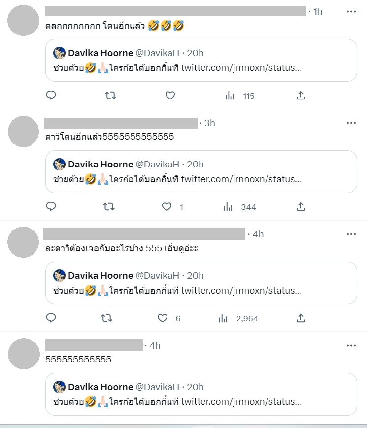 ล่าสุด (1 กุมภาพันธ์ 2566) ปรากฏการณ์เดจาวูดูเหมือนจะเกิดขึ้นกับ ใหม่ ดาวิกา อีกครั้งหนึ่งแล้ว เมื่อเจ้าตัวไปร่วมงานอีเวนต์หนึ่ง แล้วนักแสดงหนุ่มดาวรุ่ง บิวกิ้น พุฒิพงศ์ ก็เผลอเหยียบชายกระโปรงยาวลากพื้นของสาวใหม่แบบตึงเปรี๊ยะโดยไม่รู้ตัว จนถูกแฟนคลับแคปภาพมาแซว ซึ่งสาวใหม่ก็มีการโควตทวิตเตอร์พร้อมระบุข้อความว่า "ช่วยด้วย ใครก็ได้บอกกิ้นที"