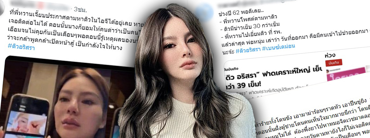 นอกจากนี้ ยังมีคนย้อนไปถึงช่วงเดือนสิงหาคม 2562 ที่ ดิว อริสรา เล่าเหตุการณ์หวิดเสียโฉม เกิดอุบัติเหตุพลาดตกเก้าอี้ กระจกแตกทิ่มหน้าและเข่า ต้องเย็บรวม 39 เข็ม ว่าความจริงสาเหตุอาจจะเป็นอีกแบบหรือเปล่า หลังได้เห็นภาพที่สาวดิวเผยหลักฐานการถูกแฟนเก่าทำร้ายร่างกายในช่วงนั้น