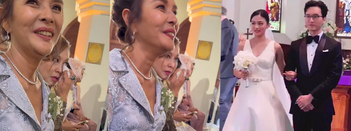 โดยที่งานแต่งงานครั้งนี้ จัดขึ้นอย่างอบอุ่นเรียบง่าย ที่โบสถ์คริสตจักรไคร้สตเชิช โดยที่มีเพื่อนพ้องในวงการของแม่ ๆ ทั้งสอง ทั้ง จริยา แอนโฟเน่, ท็อป ดารณีนุช, ปู ปริศนา, ก้อง ปิยะ, มาริโอ้ เมาเร่อ ไปร่วมเป็นสักขีพยานให้กับความรักของทั้งสองคน ซึ่งมีชอตหนึ่งก่อนเริ่มพิธี ที่ผัดไทนั่งข้างชุ ชุดาภา และเจ้าตัวก็ถึงกับร้องไห้ออกมา ดีใจที่วันนี้ลูกสาวได้เป็นฝั่งเป็นฝา กับคนที่ควรคู่กันมาจริง ๆ