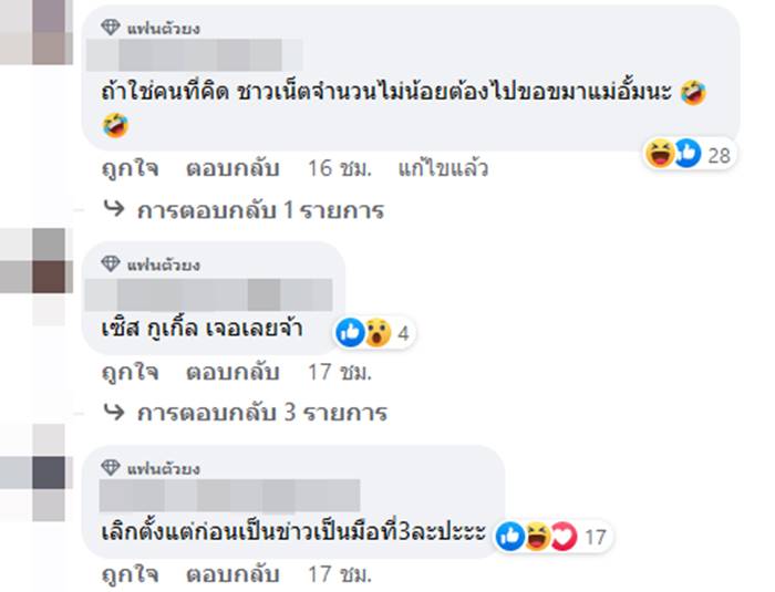 งานนี้ทำเอาชาวเน็ตเข้ามาคอมเมนต์เดากันสนั่น และมีอักษรย่อหลุดออกมาเพียบ อาทิ มร หรือ มมชน, อธ กับ ค เหรอ, เขาใหญ่ไหมคะ, แฟนเก่าบี้ป่ะ แต่รายนั้นเขามีแฟนหรือยัง, นึกออกคนเดียว ที่ไม่อยากล้างจาน, ถ้าใช่คนที่คิด ชาวเน็ตจำนวนไม่น้อยต้องไปขอขมาแม่อั้มนะ, เสิร์ช กูเกิ้ล เจอเลยจ้า, เลิกตั้งแต่ก่อนเป็นข่าวเป็นมือที่ 3 ล่ะป่ะ, ขายต้นไม้ค่าา, ถ้าหน้านิ่ง หน้าเหวี่ยงคือนึกออกอยู่ 2 คน แต่อีกคนเขาไม่มีแฟนนี่ งั้นคงอีกคนแน่ ๆ, ที่ไม่ชอบล้างจานหรอ, วันนี้ใส่แมทรึยัง, เอกเหวี่ยงคิดออกแค่ = เขาใหญ่ ฯลฯ