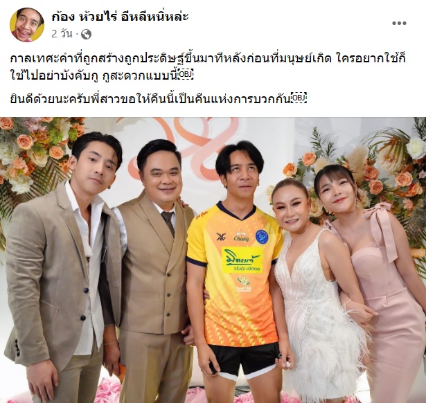 จากกรณีที่มีภาพของนักร้องหนุ่ม ก้อง ห้วยไร่ ในชุดสุดชิล ใส่เสื้อบอลไปร่วมงานแต่ง ลูลู่ อาร์สยาม และยังลงแคปชั่นดักดราม่าไว้ว่า "กาลเทศะคำที่ถูกสร้างถูกประดิษฐ์ขึ้นมาทีหลังก่อนที่มนุษย์เกิด ใครอยากใช้ก็ใช้ไปอย่าบังคับกู กูสะดวกแบบนี้..." แต่ก็ยังมีคนที่ดราม่าและมองว่าไม่เหมาะสมอยู่ดี มองว่ากาลเทศะก็สำคัญ และควรให้เกียรติเจ้าของงาน