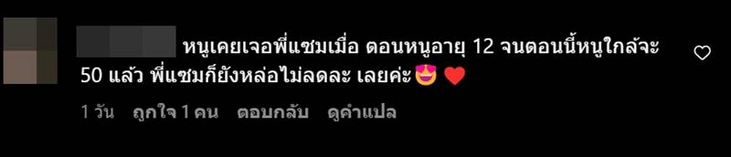 ทั้งนี้ มีคอมเมนต์หนึ่ง กล่าวแสดงความคิดเห็นชวนอึ้ง ระบุว่า "หนูเคยเจอพี่แซมเมื่อตอนหนูอายุ 12 จนตอนนี้หนูใกล้จะ 50 แล้ว พี่แซมก็ยังหล่อไม่ลดละเลยค่ะ"