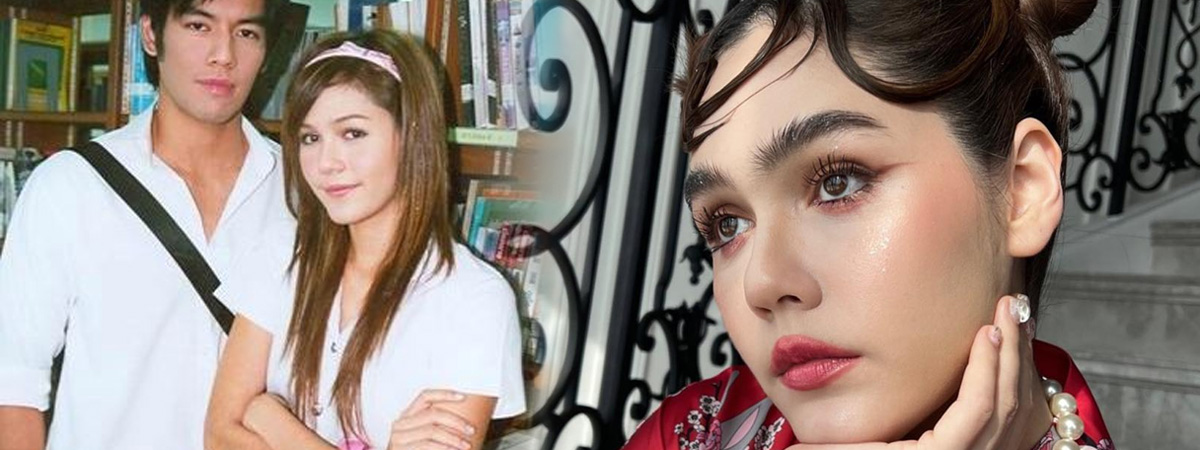 โดยเป็นภาพที่ถ่ายคู่กับพระเอกของเรื่อง โน้ต วัชรบูล ในชุดนักศึกษา ซึ่งสาวชมพู่ในตอนนั้นก็แต่งหน้า ทำผมตรงตามบรีฟเทรนด์แฟชั่นสมัยนั้นเลยจริง ๆ ทั้ง ผมทรงรากไทร ปลายผมต้องแหลม หน้าม้าซอย แต่ถึงจะย้อนไป 14 ปีก่อน ความสวยของแม่ก็ยังปังไม่เปลี่ยน