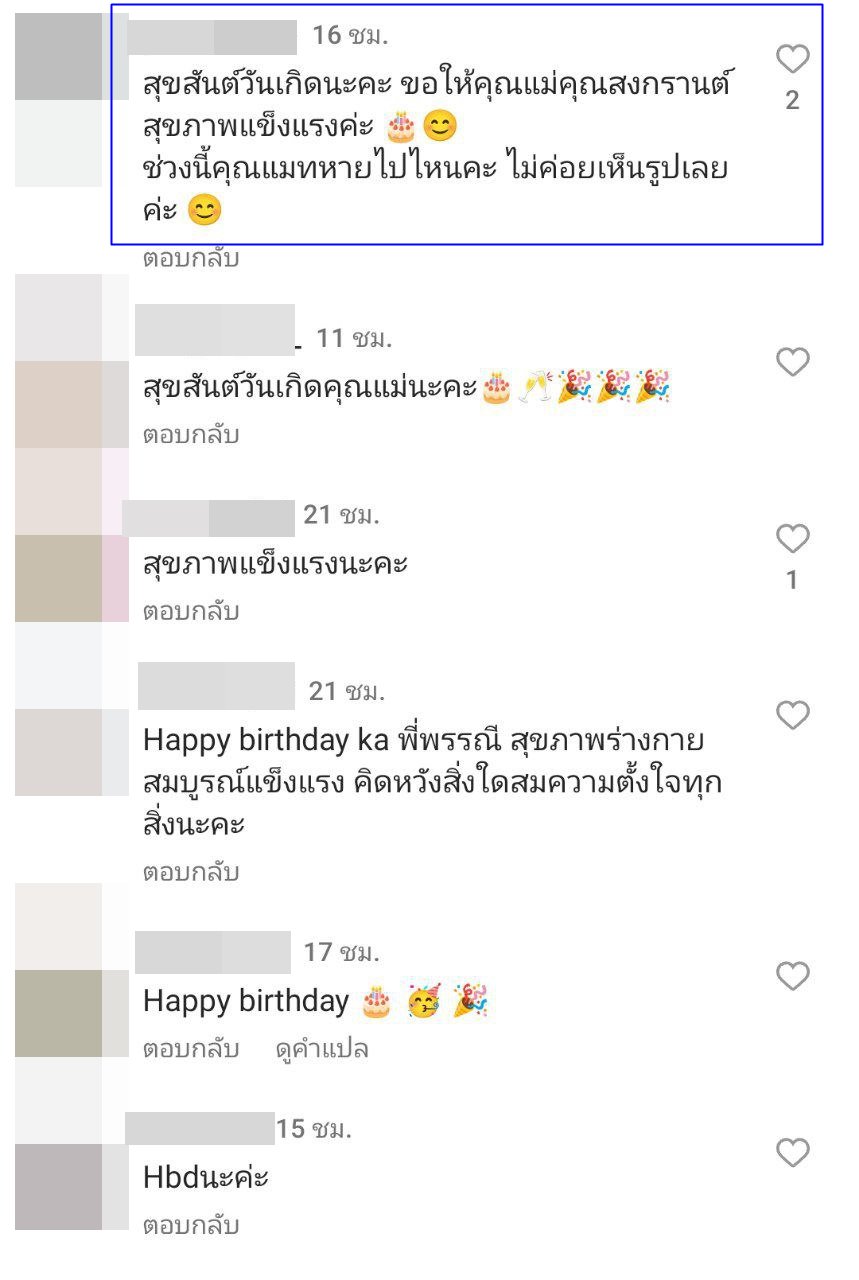 ขณะเดียวกันก็มีคนที่คอมเมนต์อวยพรวันคล้ายวันเกิดของคุณแม่ และ HBD หนุ่มสงกรานต์ ในช่วงวันสงกรานต์นี้ด้วย