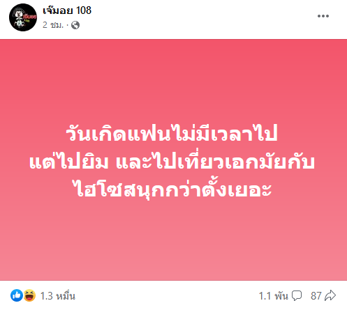 งานนี้ทำเอาหลายคนโยงไปถึงข่าวที่ล่าสุด (18 เมษายน 2566) เพจ เจ๊มอย 108 ออกมาโพสต์ว่า "วันเกิดแฟนไม่มีเวลาไป แต่ไปยิม และไปเที่ยวเอกมัยกับไฮโซสนุกกว่าตั้งเยอะ" พร้อมพากันคอมเมนต์ถึง สาวอั้ม กันสนั่น !! อาทิ คนที่ด่าอั้มไว้เยอะตอนนั้น ต้องเกียมตัวไหมคะ...., ฉันผู้รักอั้มเชื่ออั้ม, เขาใหญ่ร้อนมาก, รักอั้ม เราเชื่ออั้มตั้งแต่แรก, โอ้ยย ตำนานไม่ย้อนละจ้าาาาาาาาาา, ไปยิมหรือไปสนามเทนนิสคะ เอาดี ๆ, แก๊งนางเอกปากแซ่บ #คนเดียวกันเสียงสูง, สงกรานต์ปีนี้สนุกมากค่ะ ฯลฯ