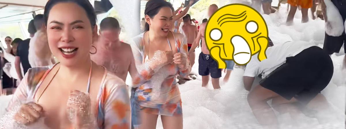 โดยในงานนี้ บุ๋ม ปนัดดา ก็มากับปาร์ตี้โฟม ที่มีคนใส่บิกินี่มาเล่นกับคังคั่ง ส่วนแม่บุ๋มก็ไม่ยั้งใส่บิกินี่ไปร่วมแจม แต่แล้ว 2 หนุ่มคนข้าง ๆ เกิดอะไรขึ้นไม่รู้ จู่ ๆ จับเพื่อนปล้ำทุ่มลงไปกับพื้น ให้จนเพื่อนจมโฟมเต็มที่ แม่บุ๋มเห็นแบบนี้เลยถึงขั้นหลบไปข้าง ๆ เดี๋ยวโดนลูกหลงมาไม่รู้ด้วย