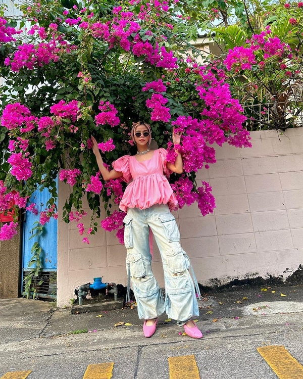 ไม่ซ้ำใครด้วยการใส่กับเสื้อทรงบอลลูนสีชมพูสดใส บอกเลยแฟชั่นไม่มีถูกหรือผิด