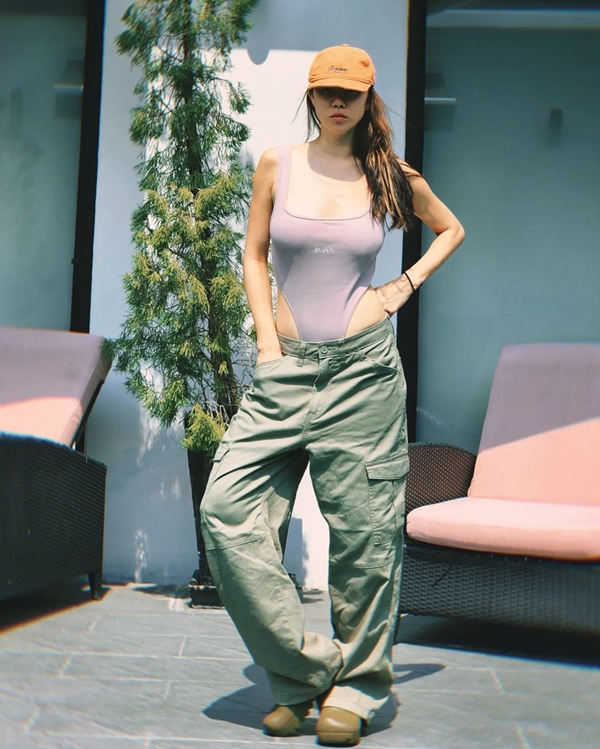 เพิ่มความแซ่บแบบไม่ตั้งใจ ด้วยการใส่กางเกงคาร์โก้กับชุดว่ายน้ำหรือบอดี้สูท