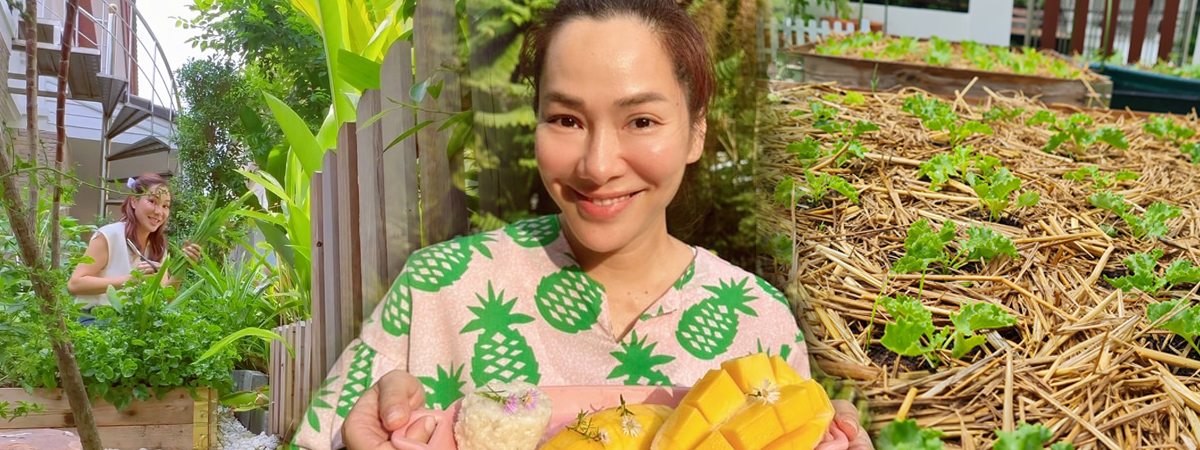 มีการปลูกผักและผลไม้แบบออแกนิกไว้กินเอง ซึ่งตอนนี้ก็กำลังผลิดอกออกผลเบ่งบานเขียวขจีไปทั่วบริเวณ เห็นได้ชัดเลยว่าสาวจอยมีความสุขมาก หน้าตาสดใส มองไปทางไหนก็สดชื่น เพราะผลผลิตเป็นที่น่าพอใจ