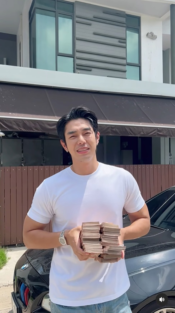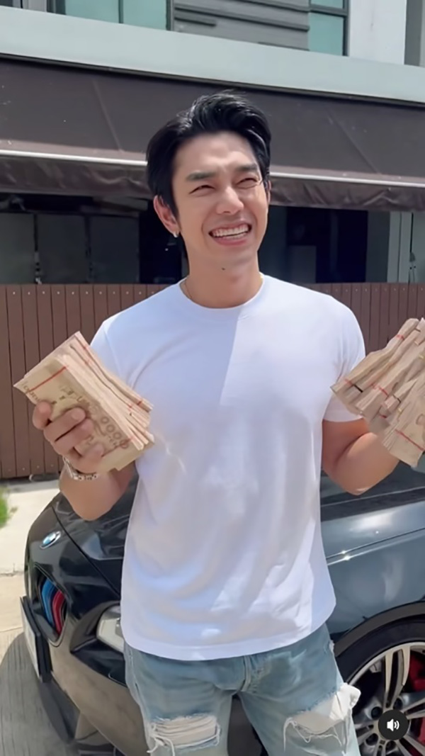 และอีกข้อความหนึ่งระบุว่า "ครั้งแรกในชีวิตที่ได้จับเงินสด 1,800,000 บาท มาเป็นกำลังใจ มาเป็นแนวคิด ให้ทุกท่านครับ ที่กำลังสร้างเนื้อสร้างตัว ผมพยายามเก็บเงินก่อนนี้มา 2-3 ปี กว่าจะได้ 1,800,000 บาท ทำทุกอย่างที่หาเงินได้อย่างสุจริต แต่อยู่กับเราได้จับแค่ 10 นาทีเอง 55555 แต่ก็ยังดีได้กอดแป๊บหนึ่ง วิธีคิดกับเงินก่อนนี้สำหรับผมมี 2 ทาง