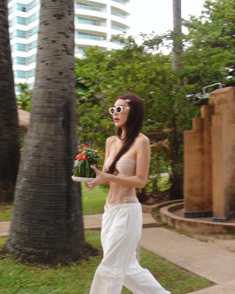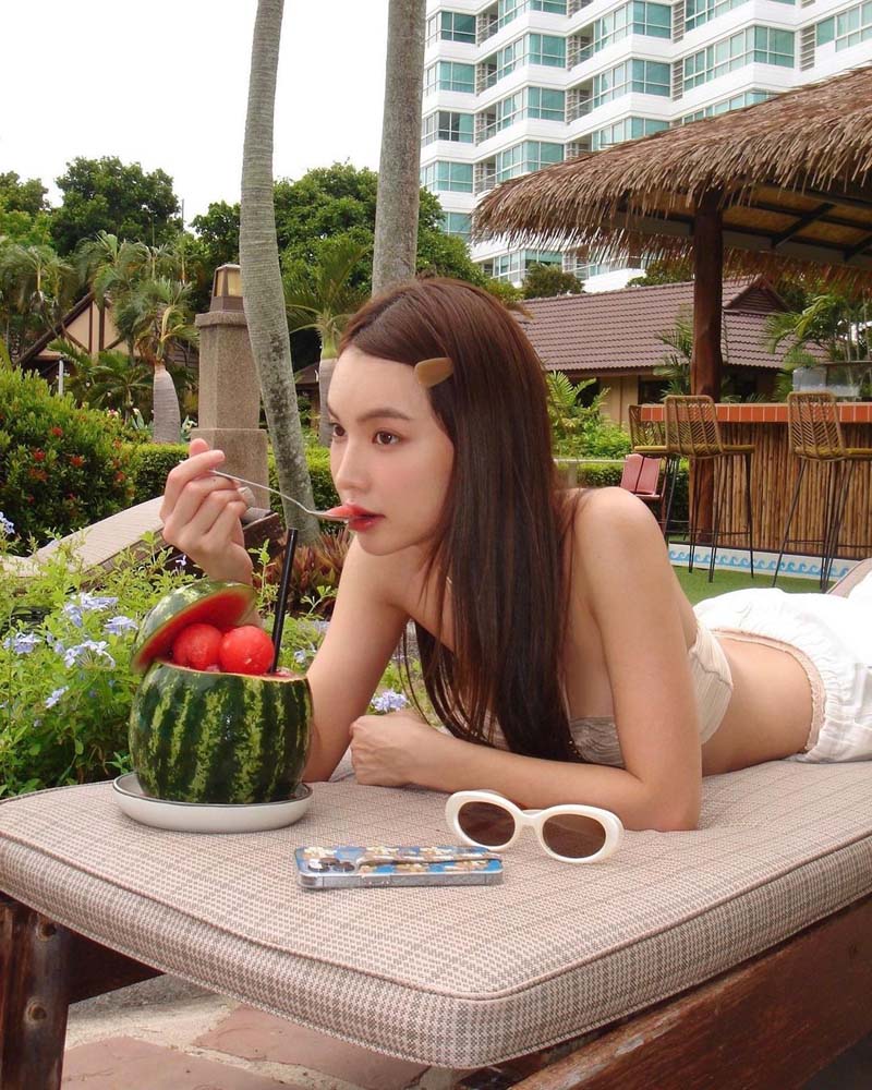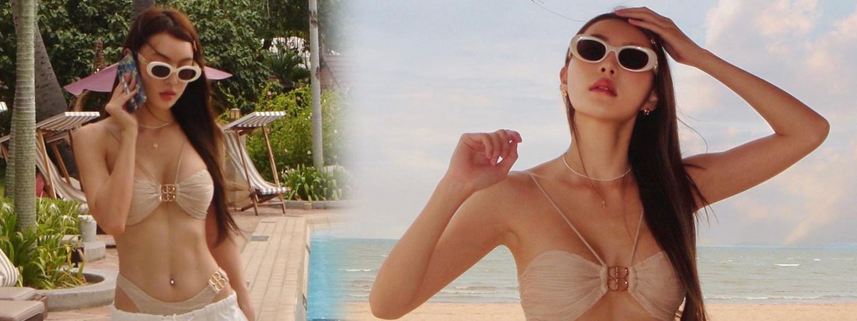 ส่องหุ่นแซ่บ กระปุก พัชรา ในชุดว่ายน้ำทูพีซสีน้ำตาล ขณะกำลังพักผ่อน ปล่อยอารมณ์ชิล ๆ อยู่ริมชายหาดพัทยา
