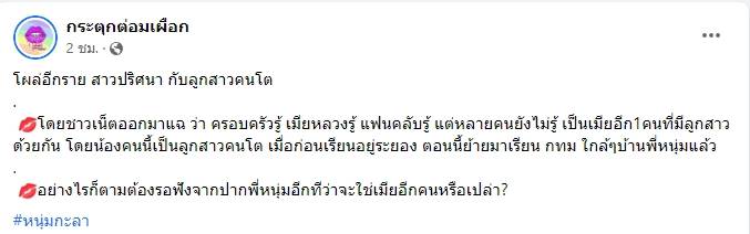 เรียกว่าดราม่าเก่ายังไม่ทันจบ เหมือนจะมีดราม่าใหม่เข้ามาหา หนุ่ม กะลา อีกแล้ว โดยล่าสุด (20 มิถุนายน 2566) เพจเฟซบุ๊ก กระตุกต่อมเผือก ได้มีการโพสต์ภาพหญิงสาวกับเด็ก พร้อมข้อความว่า "โผล่อีกราย สาวปริศนากับลูกสาวคนโต โดยชาวเน็ตออกมาแฉว่า ครอบครัวรู้ เมียหลวงรู้ แฟนคลับรู้ แต่หลายคนยังไม่รู้ เป็นเมียอีก 1 คนที่มีลูกสาวด้วยกัน โดยน้องคนนี้เป็นลูกสาวคนโต เมื่อก่อนเรียนอยู่ระยอง ตอนนี้ย้ายมาเรียน กทม. ใกล้ ๆ บ้านพี่หนุ่มแล้ว อย่างไรก็ตามต้องรอฟังจากปากพี่หนุ่มอีกทีว่าจะใช่เมียอีกคนหรือเปล่า ?"