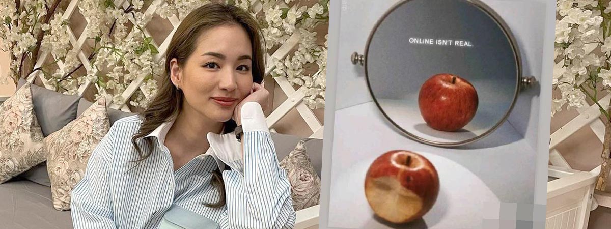 โดยเป็นการแชร์ภาพลูกแอปเปิลที่ด้านหนึ่งถูกกัดไปแล้ว แต่เงาสะท้อนในกระจกกลับเป็นผลแอปเปิลอีกด้านที่ไม่มีรอยกัด และมีข้อความในภาพว่า "ONLINE ISN'T REAL." ซึ่งมีความหมายประมาณว่าสิ่งที่อยู่ในโลกออนไลน์ไม่ได้เป็นความจริงเสมอไป