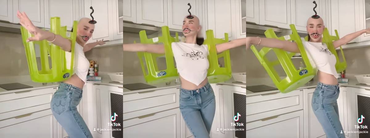 เหมือนเช่นล่าสุด (27 กรกฎาคม 2566) ที่สาวแจ็คกี้สร้างตำนานบทใหม่ ด้วยการเต้นประกอบเพลงลง TikTok และเพื่อให้เข้ากับการเป็นแดนเซอร์เพลงลูกทุ่ง ก็ต้องมีปีกเพื่อเพิ่มความกรุยกราย สาวแจ็คกี้ก็ครีเอตด้วยการหยิบเก้าอี้พลาสติกสีเขียวนีออน 2 ตัวมาทำเป็นปีก ก่อนจะเต้นโบกสะบัด แถมยังใช้ฟิลเตอร์สุดฮา พร้อมเขียนแคปชั่นประกอบว่า "โอเค จบบ เต้นประกอบเพลง 1"