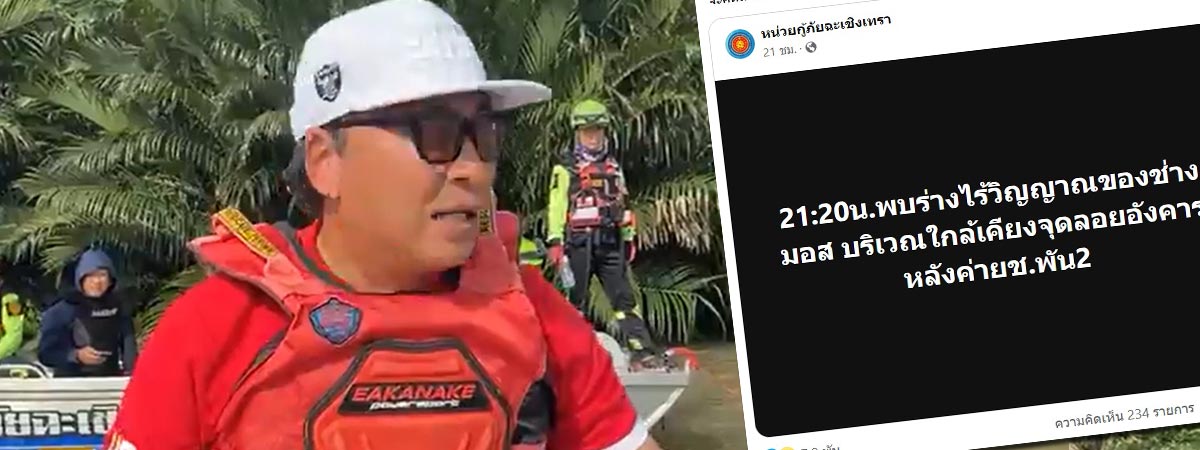 ต่อมาทางเพจ หน่วยกู้ภัยฉะเชิงเทรา ได้แจ้งข่าวเศร้าผ่านทางเฟซบุ๊กว่า ในวันที่ 28 กรกฎาคม เวลา 21.20 น. ได้พบร่างไร้วิญญาณของคุณมอส บริเวณใกล้เคียงกับจุดลอยอังคาร หลังค่ายกองพันทหารช่างที่ 202 กรมทหารช่างที่ 2