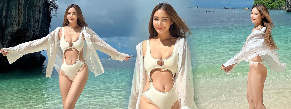 ส่องภาพล่าสุด กระแต ศุภักษร คุณแม่ลูก 2 ในชุดว่ายน้ำสีครีมสุดเซ็กซี่ ที่แอบเผยหุ่นแซ่บเซี้ยะ ณ ทริปครอบครัวที่กระบี่ ทะเลเดือดไม่หยุด !!