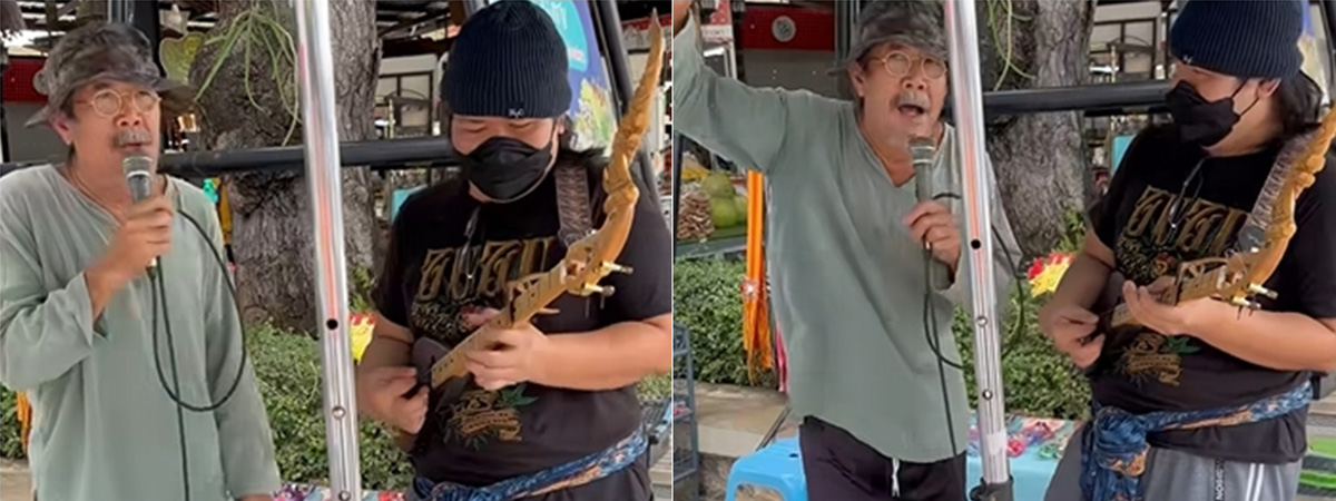 "แก่แล้ว... เพลงไม่ฮิต เล่นไม่ดีไม่มีงาน ต้องมาขอเงินที่ปั๊มน้ำมัน สู้ ๆ เด้อพี่น้องบ้านเฮา..."