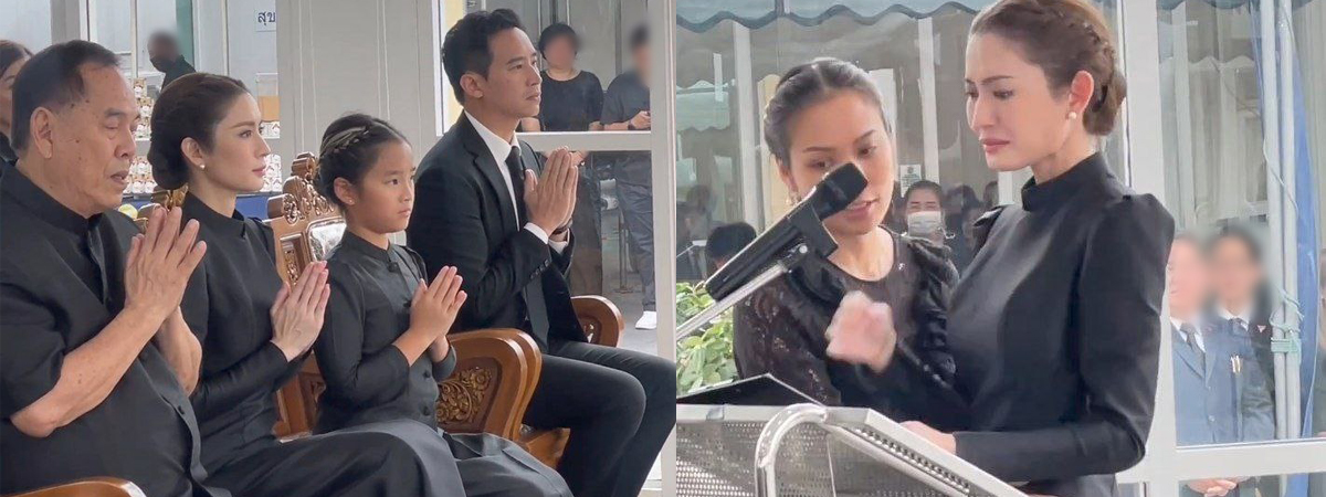 แอฟ ทักษอร สุดกลั้นสะอื้น... เสียงสั่นกล่าวคำอาลัยในงานฌาปนกิจ คุณพ่ออนุสสอนน์ ภักดิ์สุขเจริญ ทั้งน้ำตา ขณะ ปู่ไพวงษ์ - ทิม พิธา มาร่วมงานและให้กำลังใจ