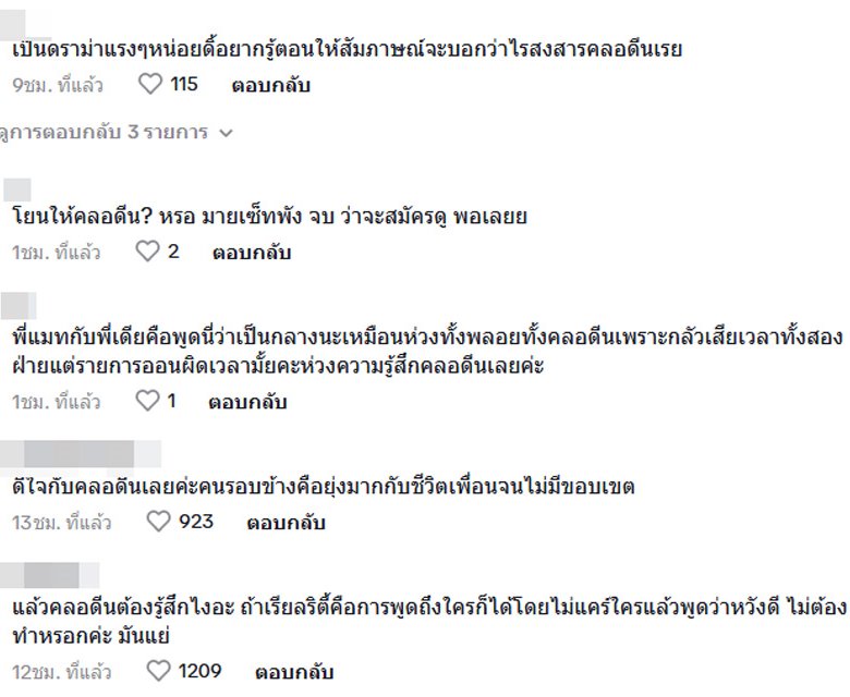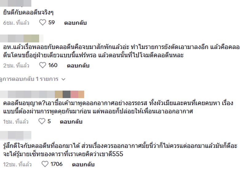 รู้สึกดีใจกับคลอดีนที่ออกมาได้ ส่วนเรื่องควรออกอากาศไหมนี่ว่าก็ไม่ควรแต่ออกมาแล้วมันก็ดีอะจะได้รู้มายเซ็ตของดาราที่เราเคยคิดว่าเขาดี 555