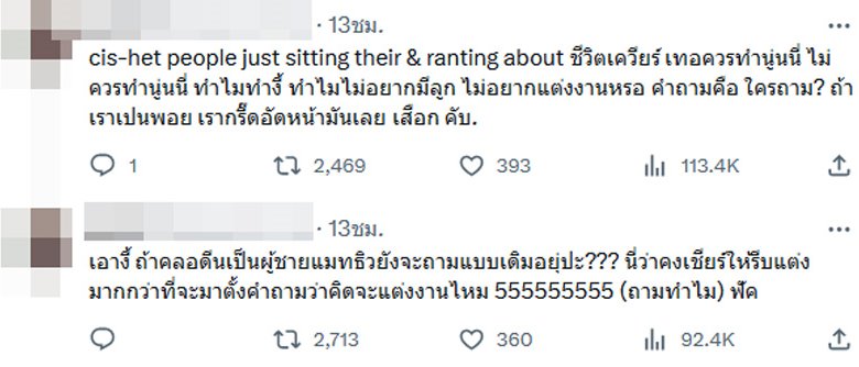 cis-het people just sitting their & ranting about ชีวิตเควียร์ เธอควรทำนู่นนี่ ไม่ควรทำนู่นนี่ ทำไมทำงี้ ทำไมไม่อยากมีลูก ไม่อยากแต่งงานเหรอ คำถามคือ ใครถาม ? ถ้าเราเป็นพลอย เรากรี๊ดอัดหน้ามันเลย เสือก ครับ