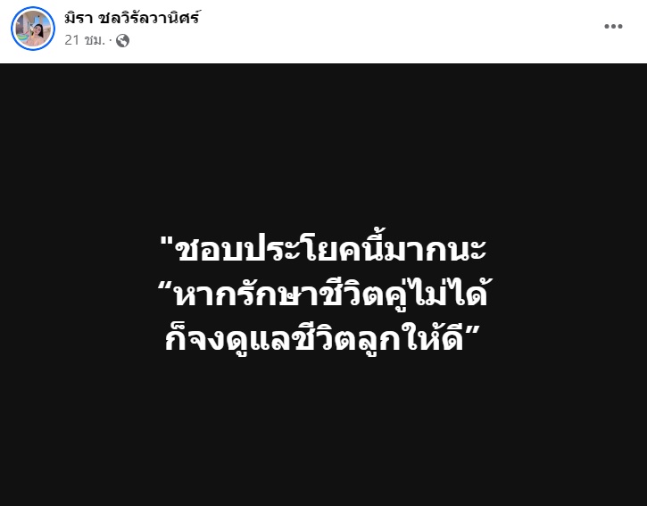 และก่อนหน้านี้ก็ได้มีการแชร์โพสต์ที่ทนายเก่งให้กำลังใจหลังเลิกกับแฟนด้วย