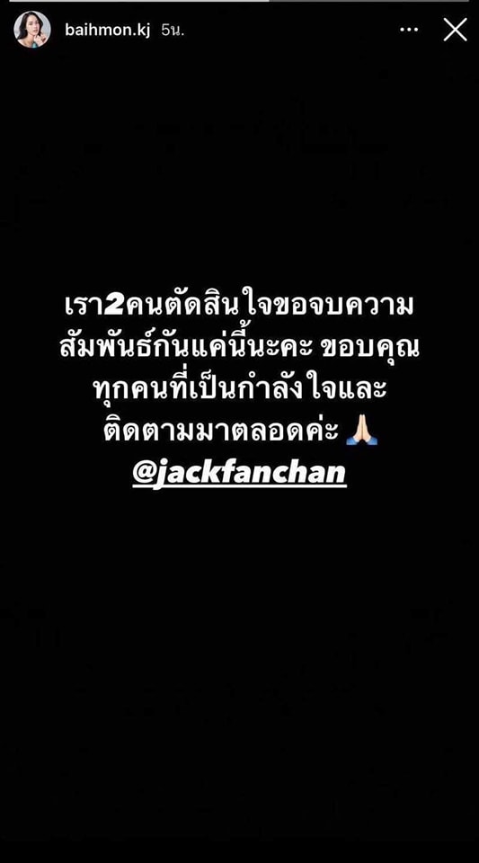 หลังจากที่ ใบหม่อน กิตติยา ประกาศจบความสัมพันธ์กับแฟนหนุ่ม แจ็ค แฟนฉัน (11 พฤศจิกายน 2566) และฝ่ายชายก็ได้โพสต์ไอจีสตอรี่สีดำพร้อมกับเพลง "ยิ้มทั้งน้ำตา" ทำให้หลายคนเป็นงงว่าเกิดอะไรขึ้นกันแน่ เพราะทั้งคู่เพิ่งจะมีโมเมนต์สวมแหวนขอจองเป็นคนของใจกันไปในทริปเที่ยวญี่ปุ่น เมื่อไม่กี่วันที่ผ่านมา (29 ตุลาคม)