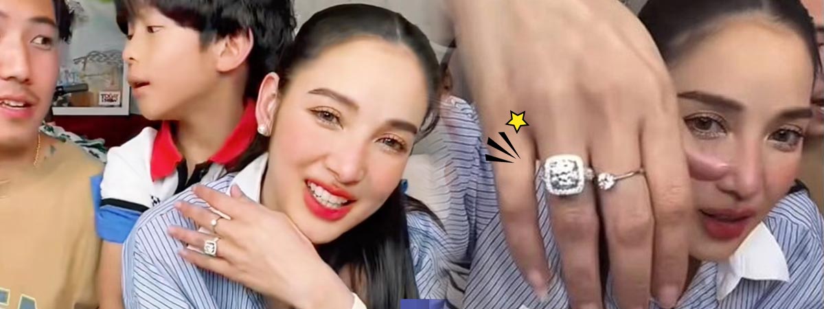 และล่าสุด (14 พฤศจิกายน 2566) สาวแพท ก็ได้ออกมาอวดแหวนเพชรเม็ดงามที่สวมอยู่บนนิ้วนาง หลัง พี ทำเซอร์ไพรส์มอบให้ งานนี้ต้องบอกเลยว่าแหวนเพชรที่ พี มอบ ให้ สาวแพทนั้นอลังการงานสร้างสุด ๆ เม็ดใหญ่ไม่เบา แถมยังเล่นแสงประกายเพชรกระแทกตาเต็ม ๆ แถม น้องเรซซิ่ง ยังเป็นคนเฉลยว่า พ่อพี เป็นคนสวมแหวนวงนี้ให้ แม่แพท ที่อิตาลีเองด้วย