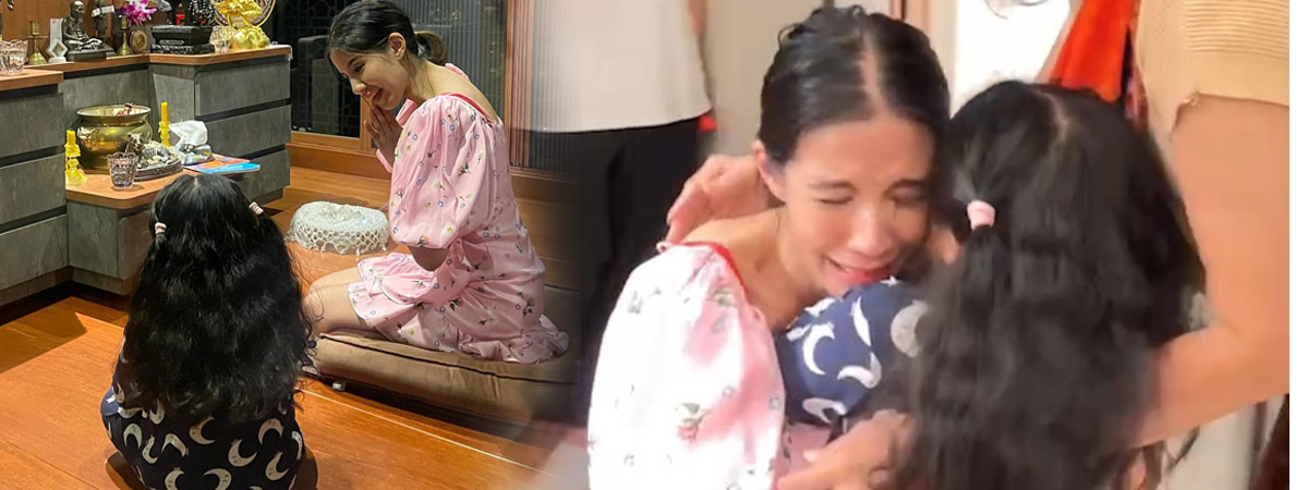 นอกจากนี้ยังมีภาพที่ ใบเตย อาร์สยาม กลับมายิ้มได้อีกครั้ง โดยส่งยิ้มให้กับลูกสาว ขณะไหว้พระด้วยกันที่บ้าน และภาพตอนยิ้มแย้มแจ่มใส กอดคุณพ่อ โดยมีลูกสาวยิ้มสดใสอยู่ข้าง ๆ ด้วยท่าทางแฮปปี้สุด ๆ โดยลุกซ์ ได้โพสต์ข้อความเปิดใจด้วยว่า...