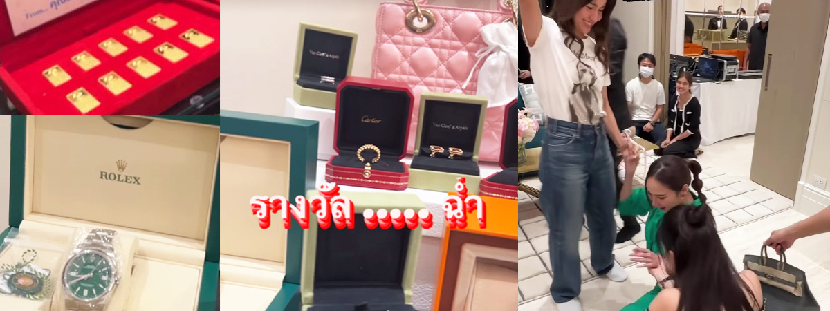 ในส่วนของรางวัลจับสลากนั้น เรียกได้ว่ามาดามแป้งทุ่มเป็นล้าน แจกกันตรงหน้า ทั้ง นาฬิกาโรเล็กซ์, แหวน Cartier, เครื่องประดับจาก Van Cleef & Arpels, กระเป๋าถือจาก คริสเตียน ดิออร์, กระเป๋า Hermes Birkin มูลค่า 800,000 บาท และทองคำแท่ง 1,000,000 บาท