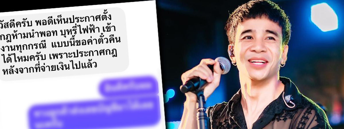 โดยในแชตแฟนเพลงได้ส่งข้อความมาว่า "เห็นประกาศกฎห้ามนำบุหรี่ไฟฟ้าเข้างานทุกกรณี แบบนี้ขอค่าตั๋วคืนได้ไหมครับ เพราะประกาศกฎหลังจากที่จ่ายเงินไปแล้ว" ด้านก้อง ก็ตอบกลับไปว่า "ยินดีครับผม ทางลูกค้าส่งเลขบัญชีมาได้เลยนะครับ" และยังบอกอีกว่า "ต้องขอประทานโทษในความไม่สะดวกด้วยนะครับ" พร้อมแนบสลิปโอนเงินค่าตั๋วคืนให้กับแฟนเพลงคนดังกล่าวไป