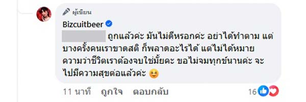 นอกจากนี้ เธอยังได้ตอบกลับอีกหลายคอมเมนต์ รวมถึงคอมเมนต์จากเพจ "เจ้าคุณพระโรส เภณีวงค์วชิรภัคดิ์" ซึ่งแต่ละคำตอบยังคงสไตล์ความมั่นแต่ไม่ได้ฟาดฟันแบบที่ผ่านมา จนหลายเสียงบอกว่า จิตใจของเธอแข็งแกร่งมากจริง ๆ